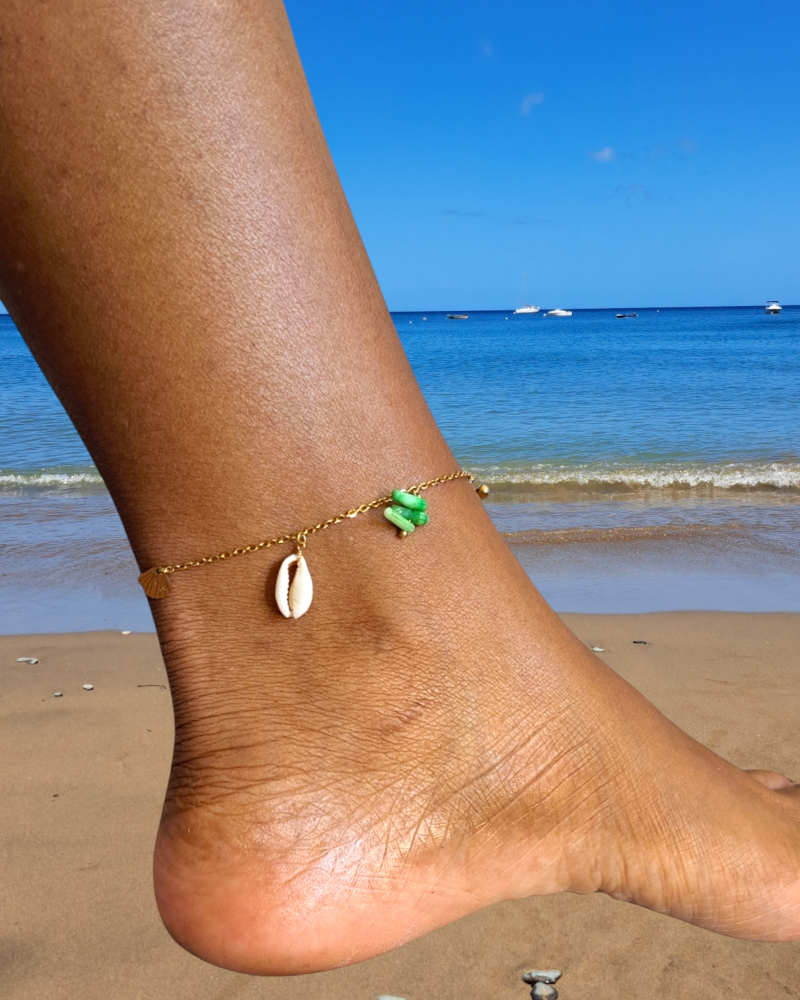 Pimentez votre look avec notre chaine de cheville unique. Ornée d'un joli coquillage et de pierres éclatantes, elle ajoutera une touche de fantaisie à vos tenues de plage. Montrez vos jambes et votre personnalité avec notre chaine de cheville ludique.