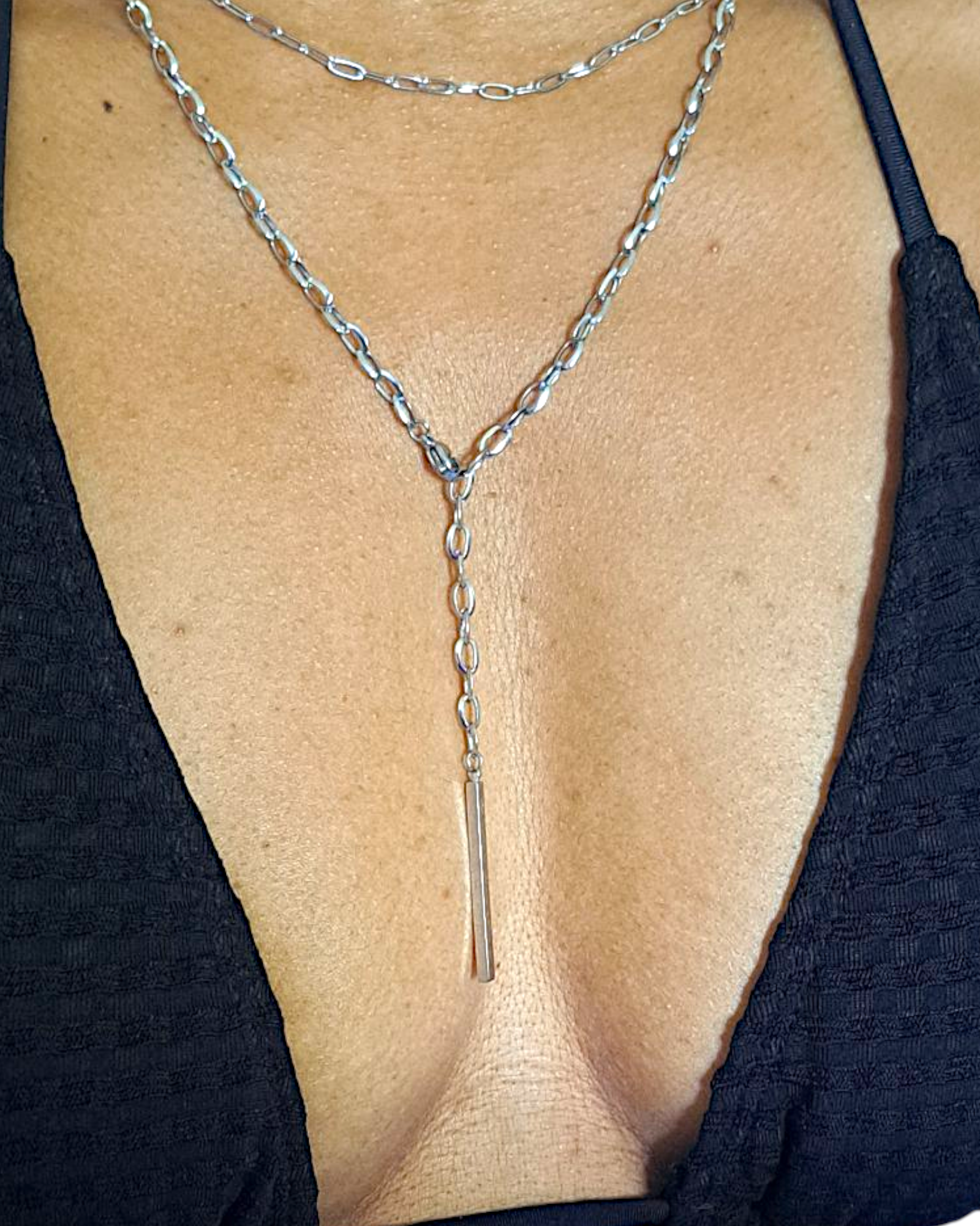 Collier Double Chaine YLANA - Acier Inoxydable Argenté