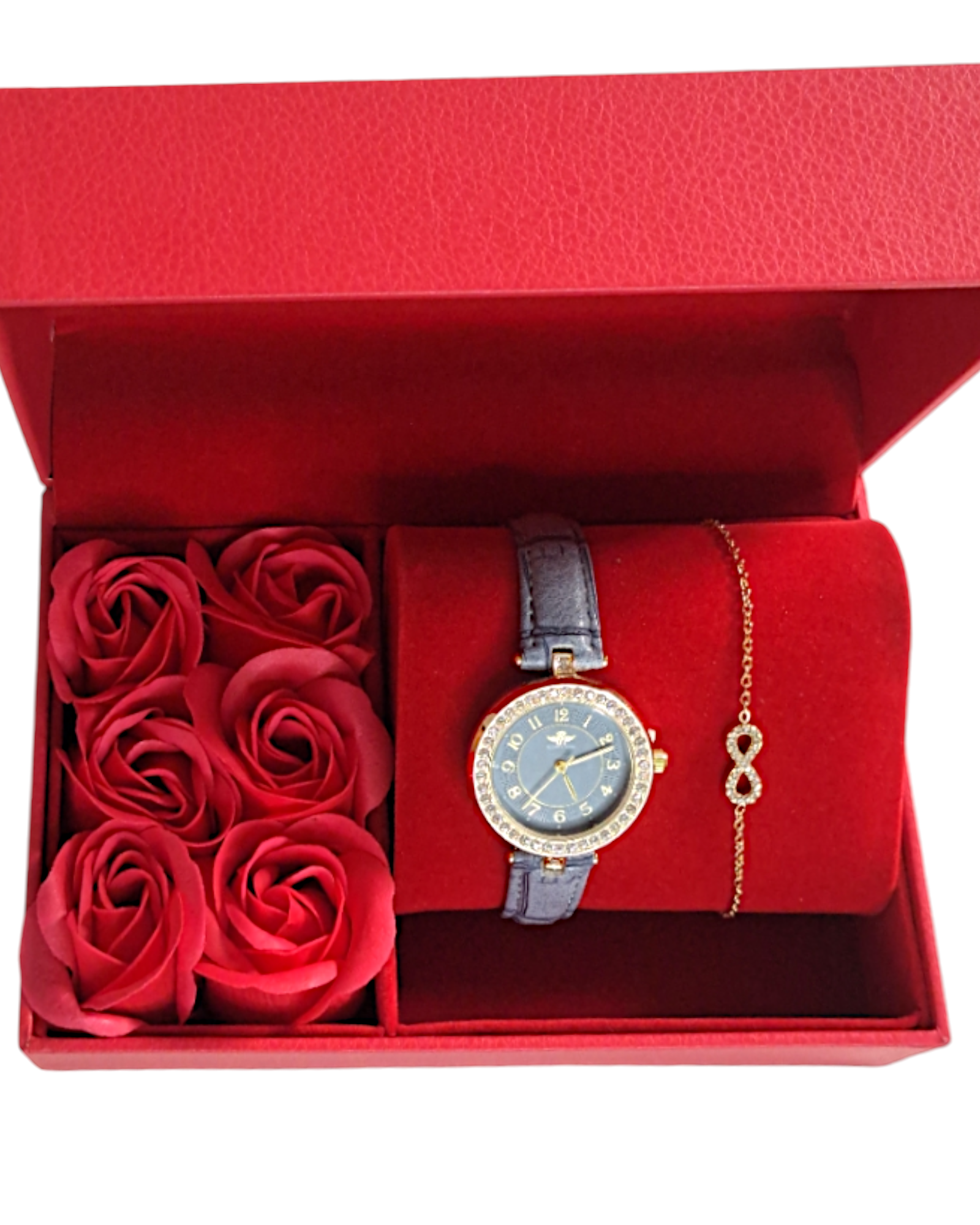 Faites plaisir à vos proches avec notre somptueux coffret cadeau montre femme, conçu pour toutes les occasions spéciales. Ce coffret exquis sert également de cadeau idéal pour montrer votre affection envers votre compagne, maman, sœur ou tout autre être cher. Mets en avant une sélection classique de bijoux qui ne manqueront pas de tourner les têtes.