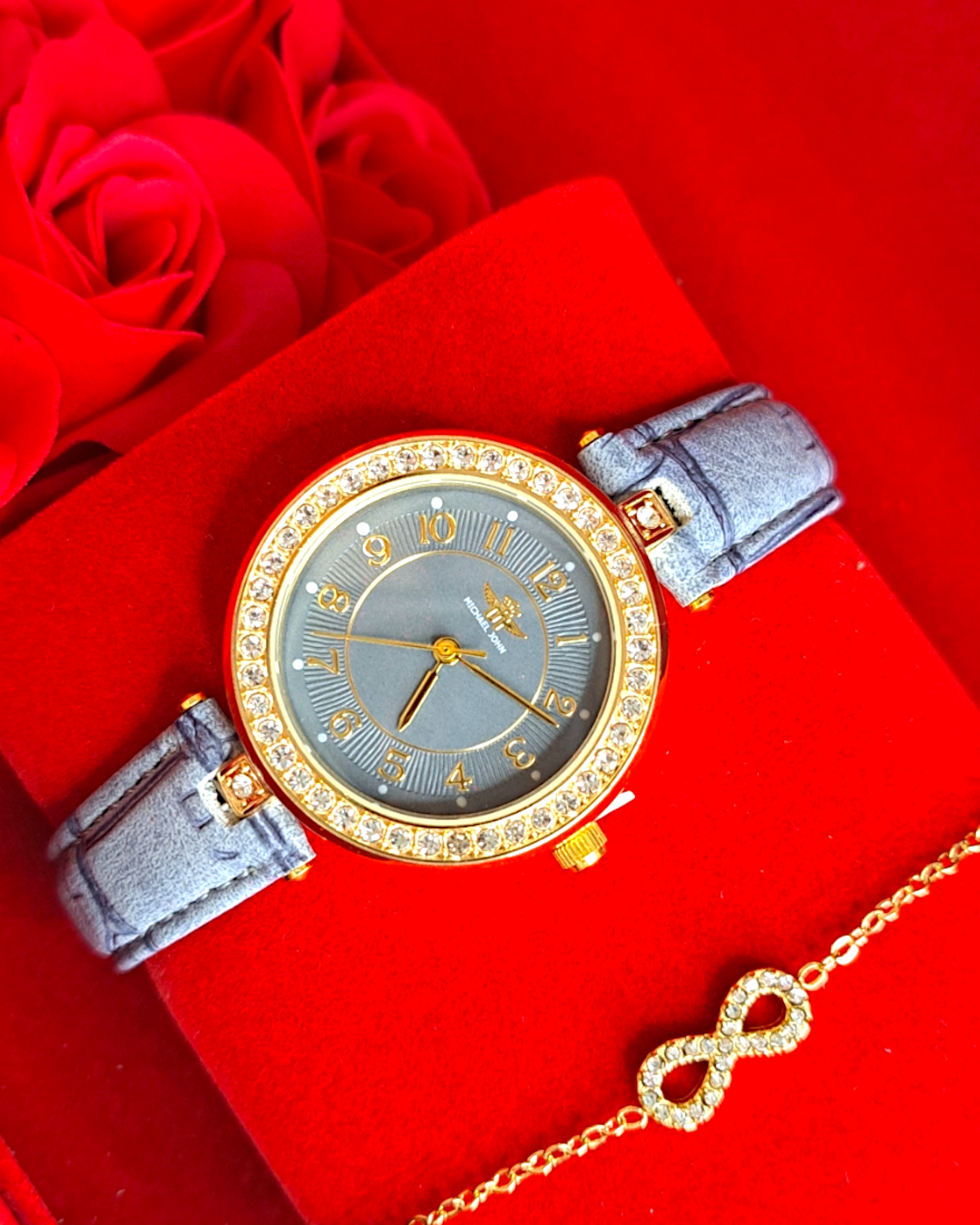 Coffret Cadeau Femme Montre bleue et Bracelet